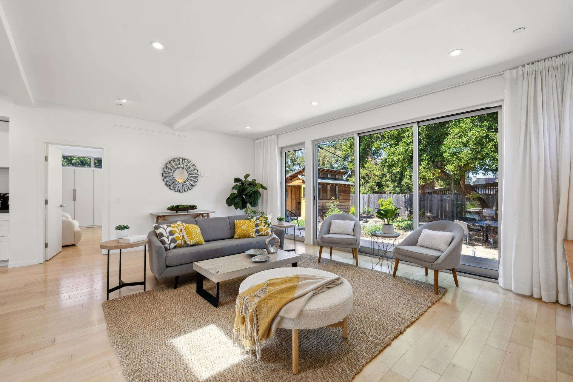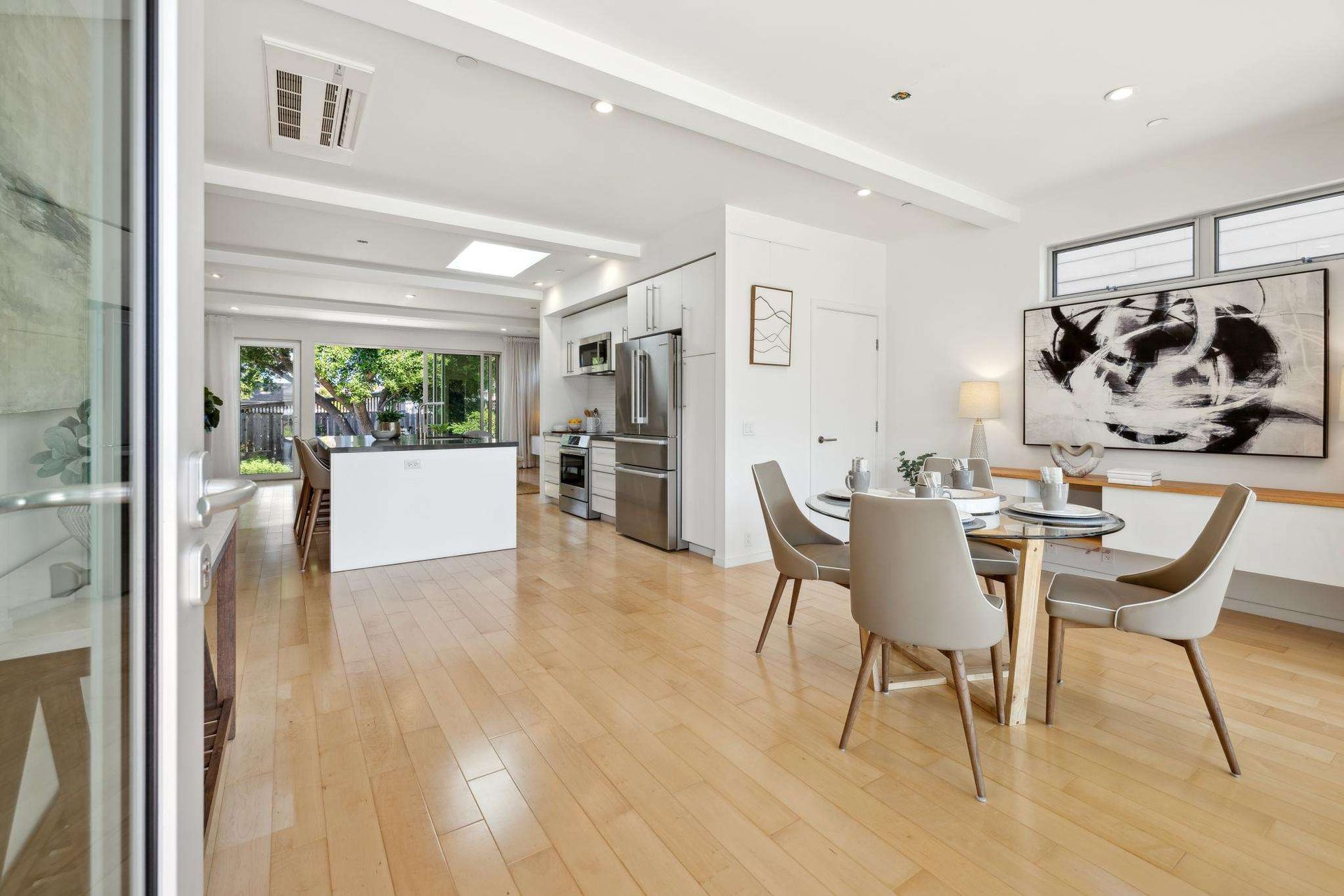Contemporary new construction completed in 2021 in prime Woodside Plaza, this generously sized single story family home is a custom-built architectural masterpiece. Modern and move-in ready, this home offers a life style of modern convenience with minimum maintenance. Experience open floor plan flows effortlessly from dining room to family room centered around an open kitchen accessible from everywhere in the house. The gourmet kitchen is perfect for family meals and friend gatherings featuring a kitchen island, a coffee bar, top appliances, pull-out pantry, and a separated walk-in pantry. Sun shines in from skylights and windows. Soaring ceiling and wood flooring throughout. Two generously sized bedrooms each with its own bathrooms. What better ways to wake up to toasty warm floors and walk to the deck from the primary bedroom to enjoy fresh air and private backyard, not to mention a wall of closets that line the primary bedroom. Enjoy the tranquility and privacy of the backyard with mature trees and flowers of all seasons. Many possibilities of the attached garage/storage and a free-standing workshop in the back- an artist’s studio, an office, a playhouse, or an ADU. A freestanding of 120 sqft with 40 amp subpanel, lighting, and outlets and a water faucet behind the structure. House: 1600 sqft, Garage/Storage: 217 sqft. Property Total: 1817 sqft per Realist. Easy access to all major Silicon Valley establishments and employers via Hwy I-101 and I-280.